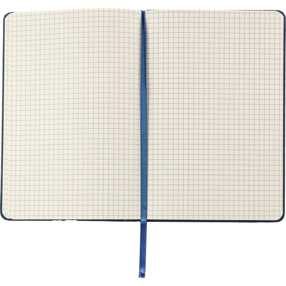 PU jegyzetfüzet (kb. A5 méret) 96 lapos, margó nélküli, 5 mm-es négyzetráccsal. Könyvjelző szalag és gumis záródás.
