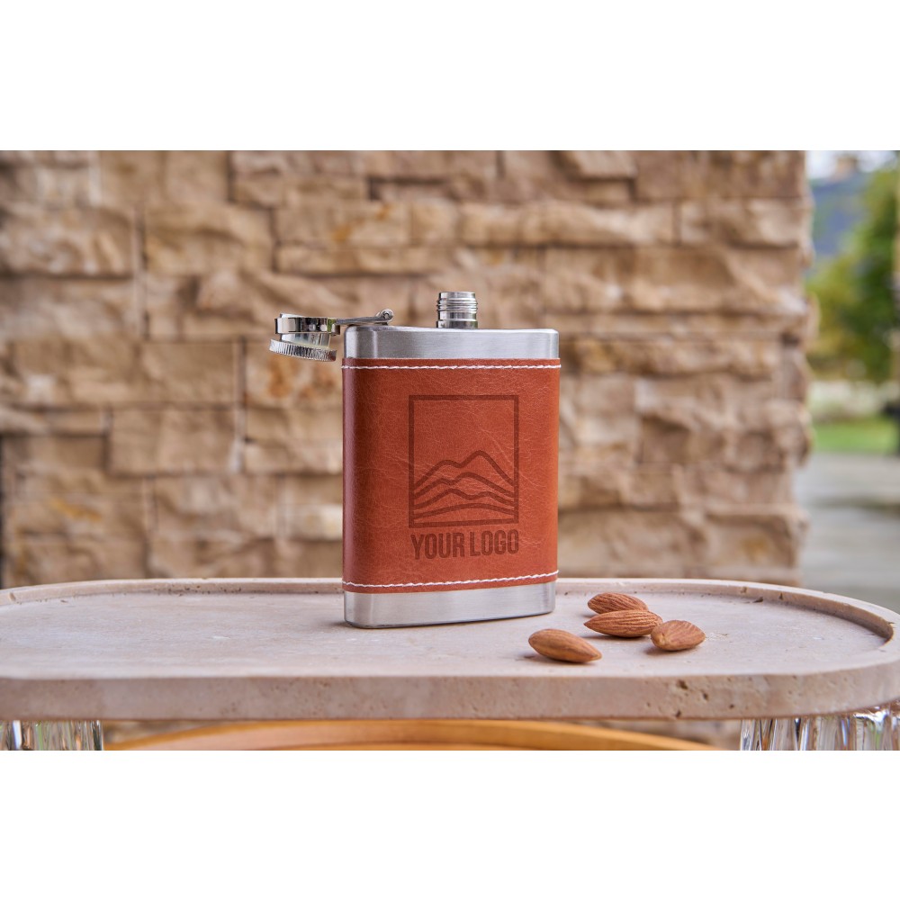 Laposüveg PU borítással. 304-es rozsdamentes acélból készült. Egyenként barna kartondobozba csomagolva. Űrtartalom: 100 ml.