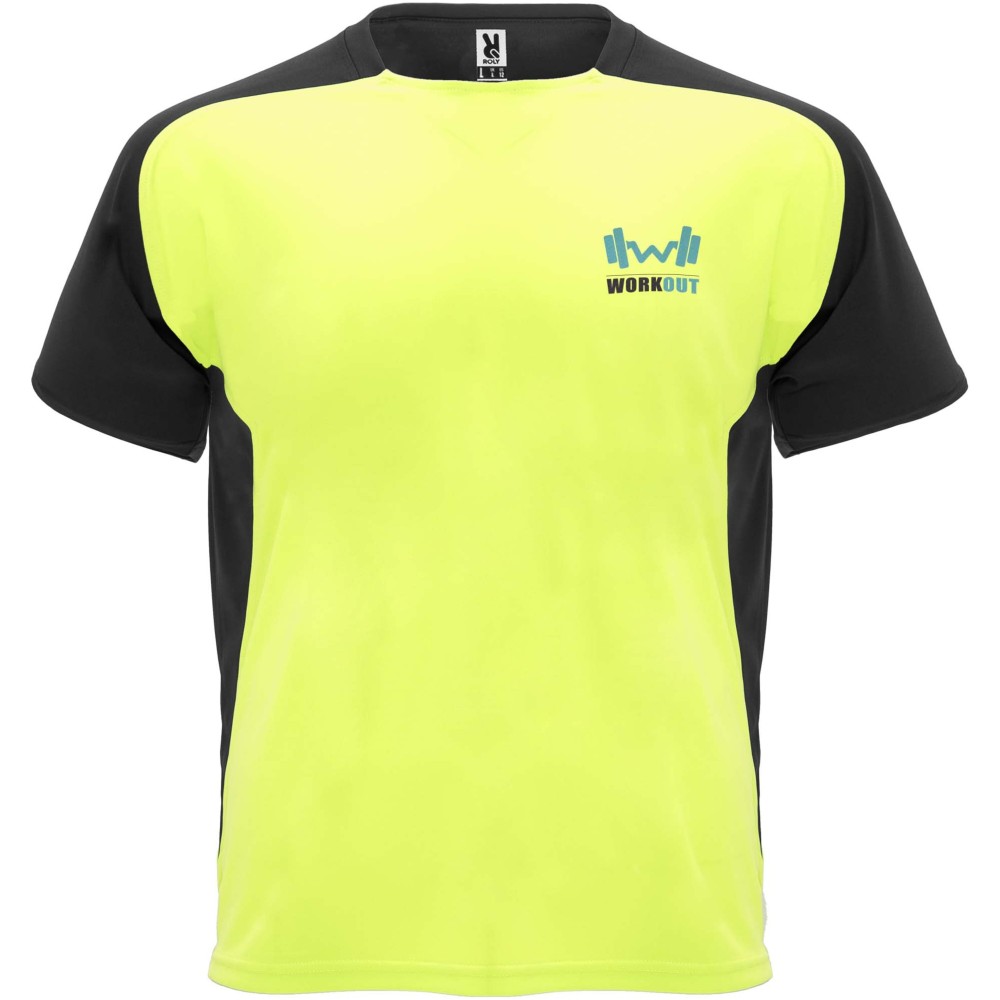 Roly Bugatti rövid ujjú uniszex sportpóló, fluor yellow, solid black